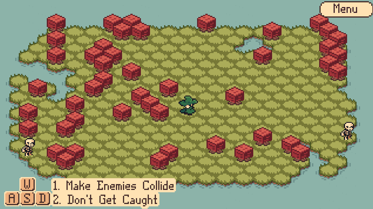 Stranded on an Island infested with skeletons, your only hope of survival is to maneuver so they collide into each other before they run into you.